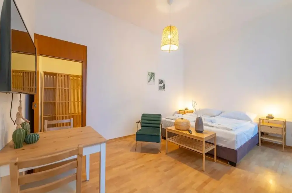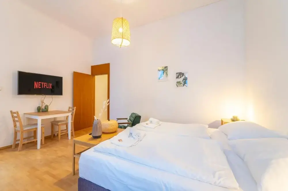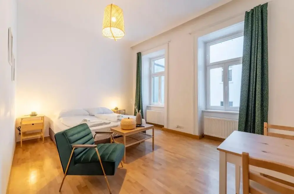 Das Josef’s Home I Comfort Studio liegt zentral im Wiener Bezirk Alsergrund, direkt an der Adresse 1A Sobieskigasse. Die Unterkunft bietet eine praktische Ausstattung für kurze Aufenthalte und punktet durch ihre ruhige Atmosphäre sowie die gute Erreichbarkeit wichtiger Sehenswürdigkeiten und Verkehrsanbindungen. Besonders hervorzuheben sind die Nähe zum Franz-Josephs-Bahnhof (600 Meter) sowie zur Volksoper am Währinger Ring (250 Meter). Innerhalb weniger Gehminuten erreicht man zudem den Arne-Carlsson-Park oder die historische Strudlhofstiege, einen beliebten Fotospot aus dem Film „Der Bockerer“. Für Kulturinteressierte liegen das Kunsthistorische Museum (2,5 Kilometer), die Albertina (2,6 Kilometer) und das Leopold Museum (ebenfalls 2,6 Kilometer) gut erreichbar. Auch der Kahlenberg mit seinem Panoramablick über Wien befindet sich nur etwa fünf Kilometer entfernt. Der Kaisersee ist rund vier Kilometer weit weg und lässt sich bequem mit öffentlichen Verkehrsmitteln erreichen. Im direkten Umfeld finden sich zahlreiche Restaurants entlang der Roschégasse (ca. zehn Kilometer Luftlinie), während lokale Geschäfte und Büros wie die Attia Handels-Holding GmbH vor Ort ansässig sind. Das Studio verfügt über kostenfreies WLAN und richtet sich besonders an Gäste, die Wert auf eine zentrale Lage ohne laute Umgebung legen.